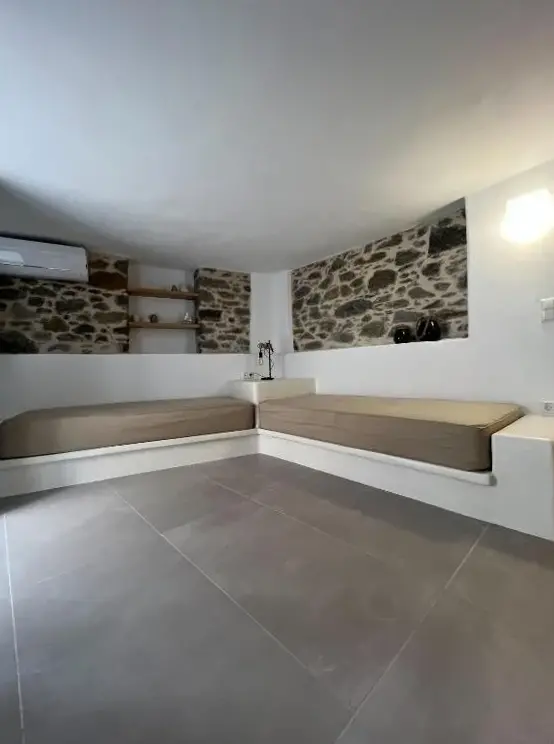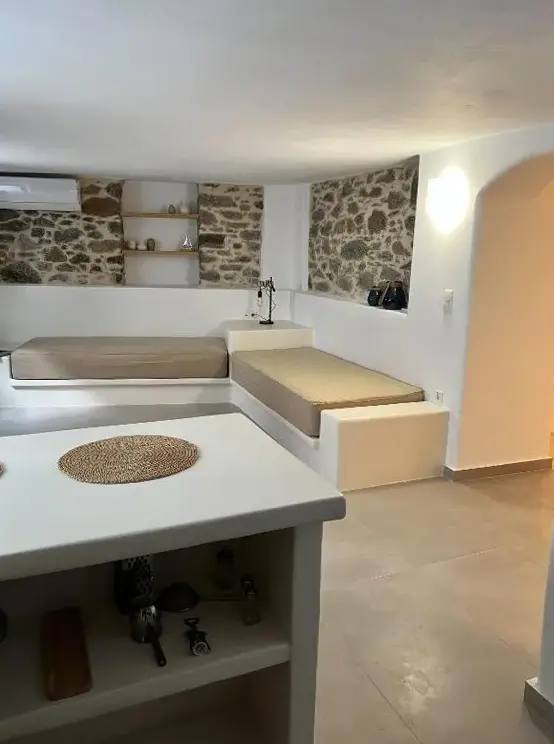 Comfortable Living: Cycladic Stone House in Chora Naxos offers a one-bedroom apartment with two bathrooms and a spacious living room. The property includes air-conditioning, a washing machine, and a fully equipped kitchen with a tea and coffee maker. Modern Amenities: Guests enjoy free WiFi, a hairdryer, shower, TV, and a private entrance. The apartment ensures a pleasant stay with all necessary comforts. Convenient Location: Located 1.9 mi from Naxos Island National Airport, the apartment is a short walk from Agios Georgios Beach (7 minutes) and Naxos Castle (1312 feet). Nearby attractions include Portara and the Archaeological Museum of Naxos. Guest Satisfaction: Highly rated for room cleanliness and convenient location, the property provides a comfortable and enjoyable stay.